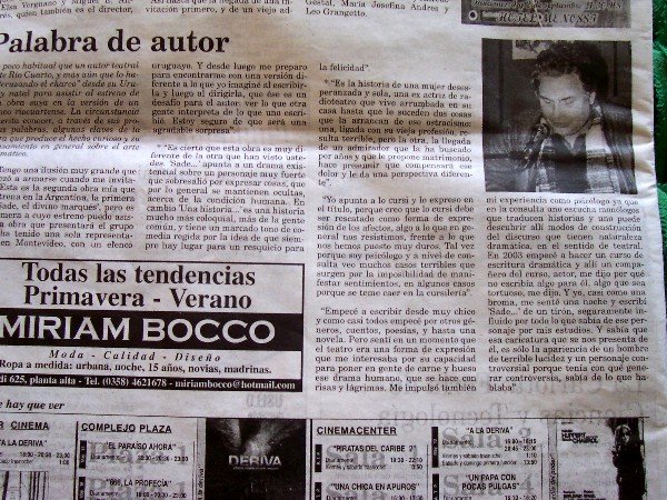 La versión cordobesa de esta obra se estrenó el 1º de setiembre 2006 y allí estuvimos.