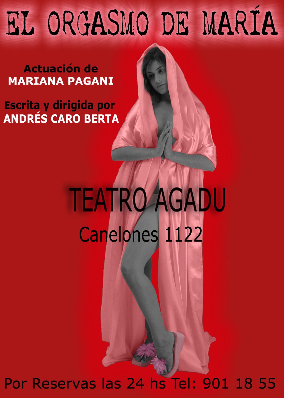 Afiche para el estreno en el Teatro AGADU, realizado por Magali Aguerre, con fotografía de Roberto Estévez