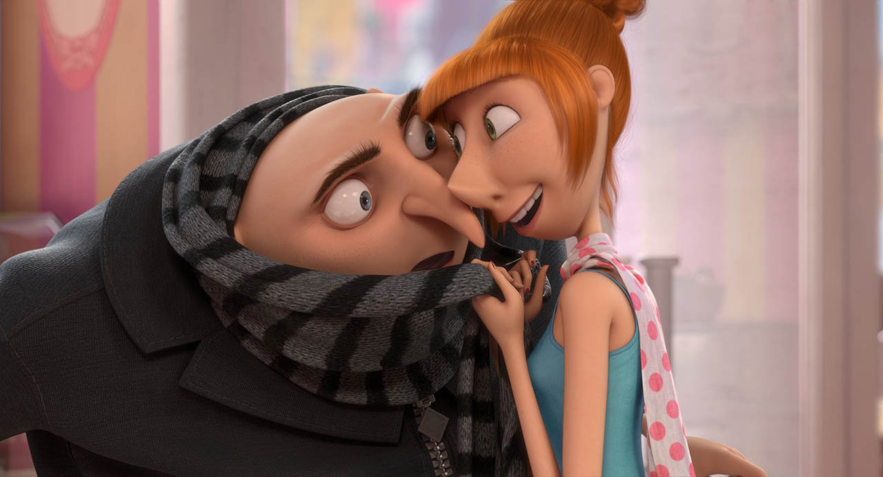 Quien es la encargada de raptarlo es una espía que parece malísima, pero resulta un pan de Dios, Lucy que termina enamorándose de Gru