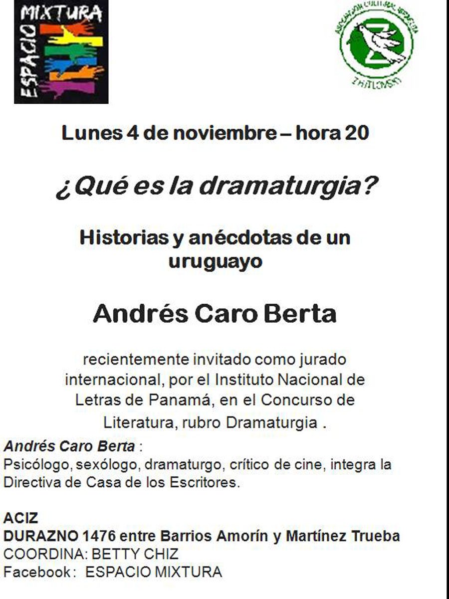 Para hablar de dramaturgia, y el viaje a Panamá fue invitado al Espacio Mixtura que dirige Betty Chiz