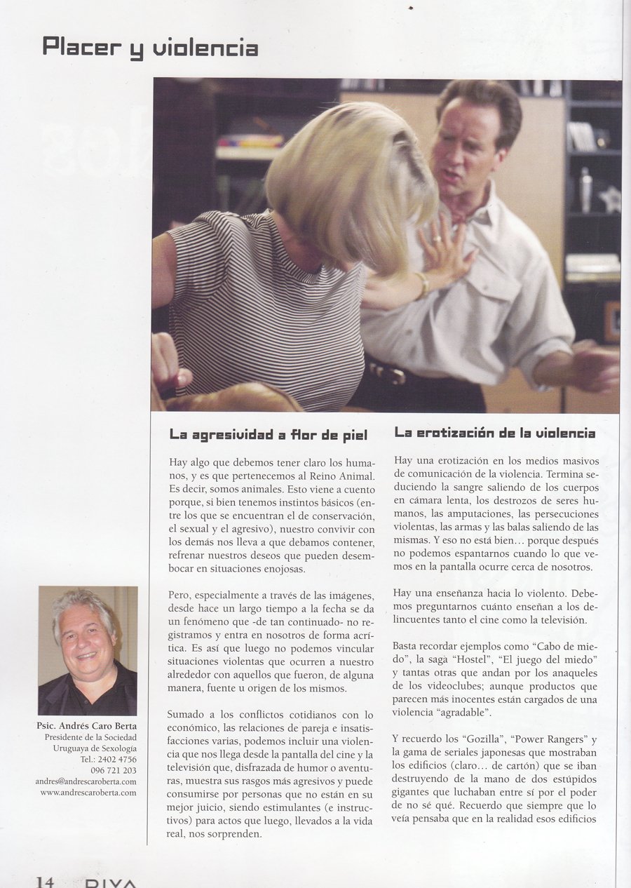 Dicho artículo está titulado SEXUALIDAD. ¿SEDUCIDOS POR LA SRA. VIOLENCIA? ¿Como puede incidir una erotización temprana desde los medios de comunicación?