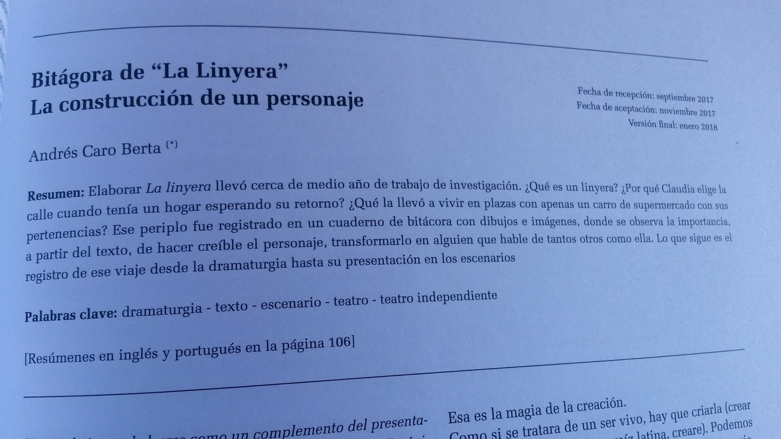 Andrés Caro Berta figura en el mismo (p. 103) con el trabajo “Bitácora de La linyera. La construcción de un personaje”.