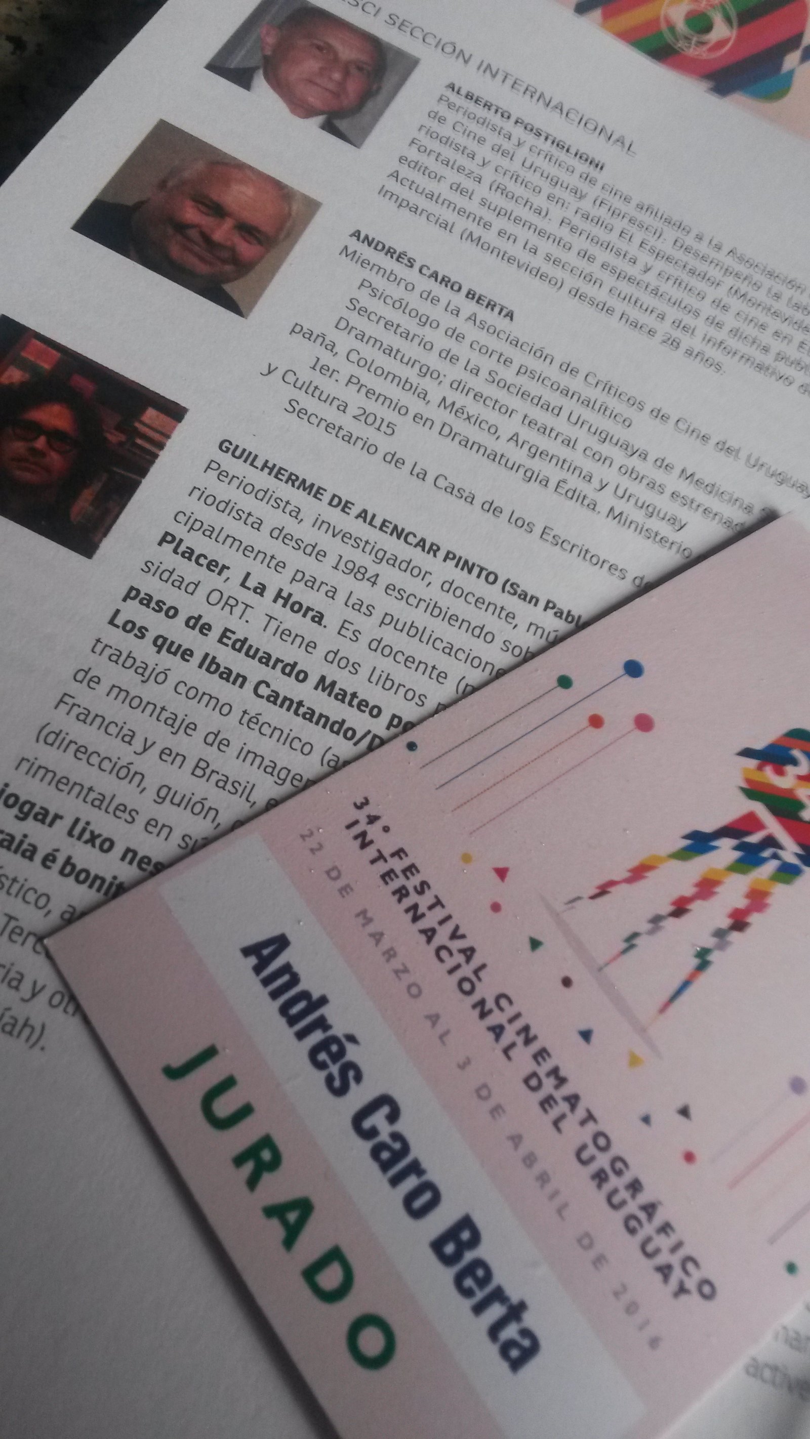 Una vez más fui honrado en ser Jurado del 34º Festival Cinematográfico Internacional del Uruguay, organizado por la Cinemateca Uruguaya, en representación de la Asociación de Críticos de Cine del Uruguay.