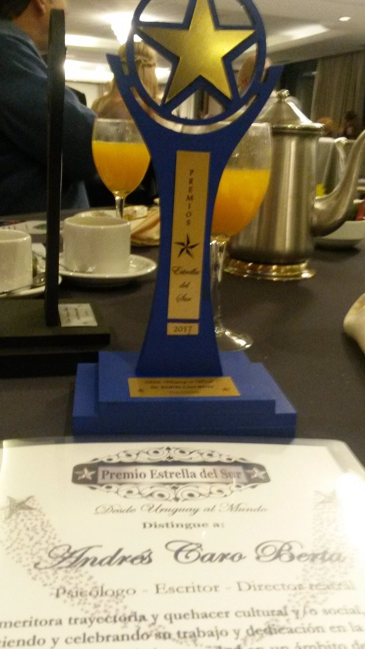 El 20 de mayo de 2017, en el piso 25 del Hotel Sheraton, Andrés Caro Berta recibió el premio Estrella del Sur Oro por su trayectoria en la Psicología, la Escritura y la Dirección Teatral.